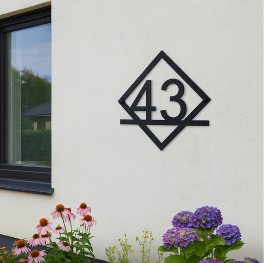 Maak een statement met onze elegante en moderne ruitvormige huisnummers, verkrijgbaar in wit en zwart...