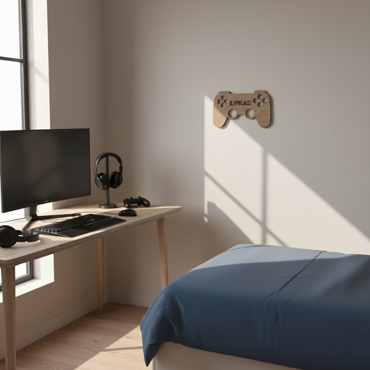 Een super stoer naambordje in de vorm van een gamecontroller - perfect voor de slaapkamer...
