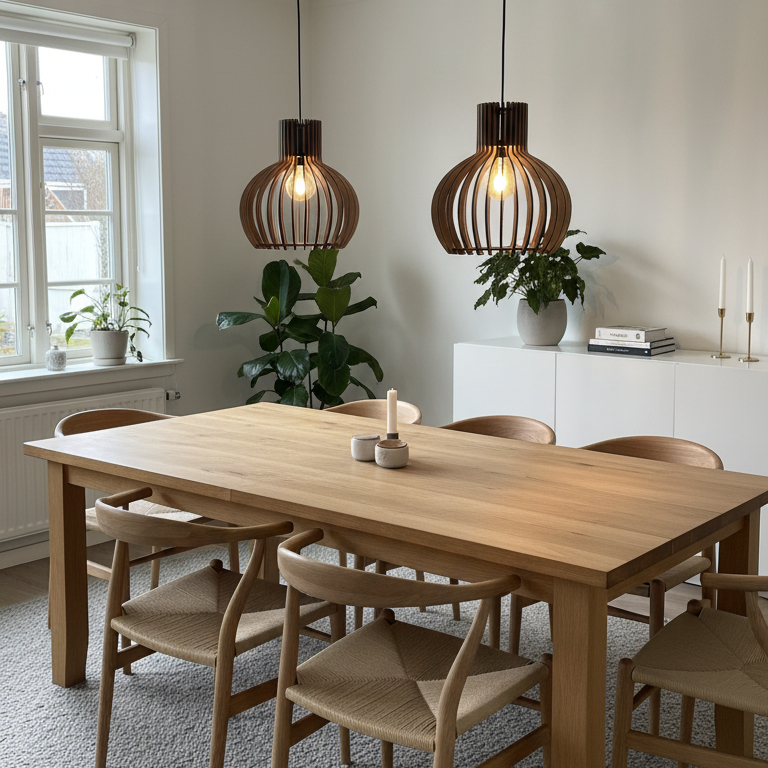 De lamp is gemaakt van duurzaam hout en past in zowel moderne, Scandinavische als klassieke interieurs. De open constructie geeft een lichte en elegante uitstraling, terwijl het licht gelijkmatig door de ruimte wordt verspreid. Ideaal als eettafellamp of als decoratieve verlichting in huis.