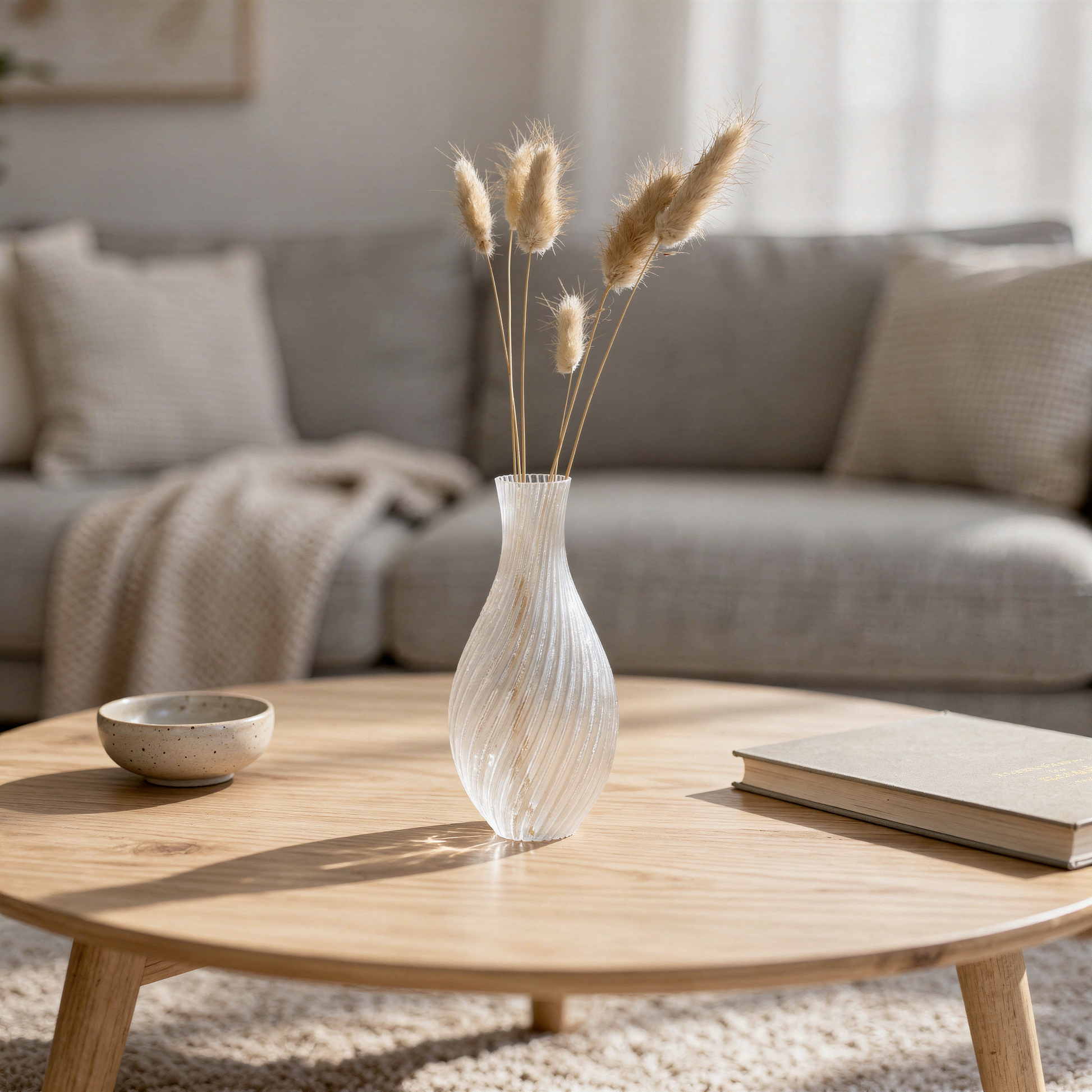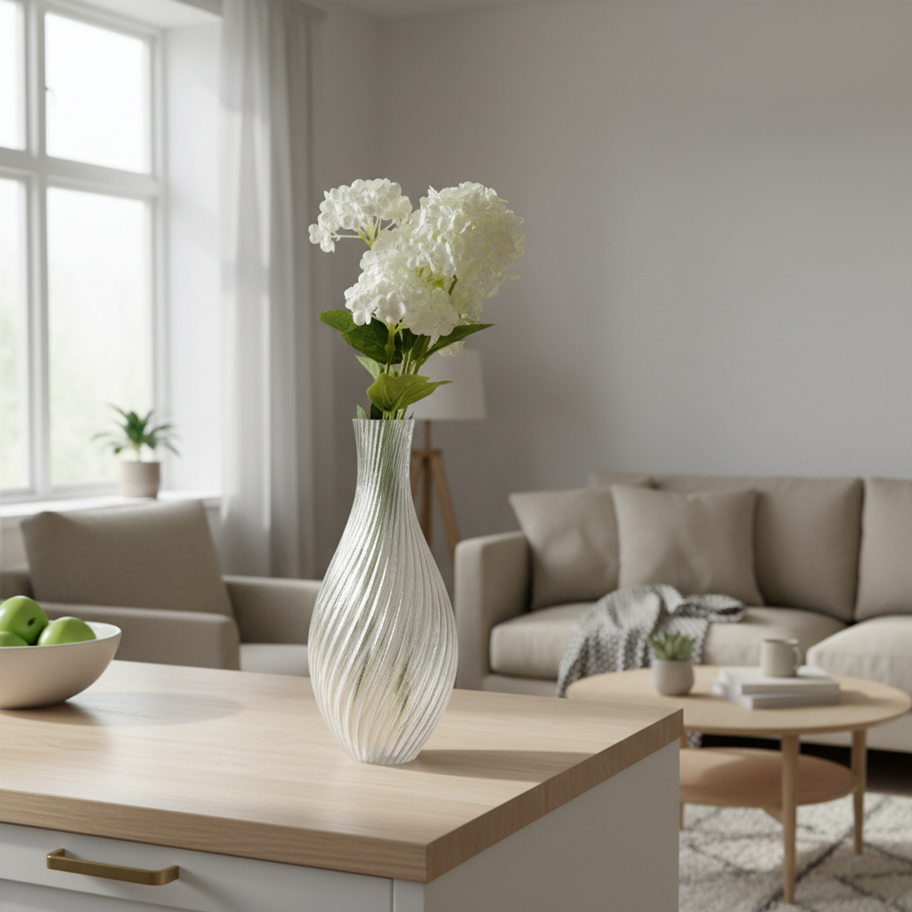 De vaas is 3D-geprint in slijtvast PETG-materiaal, wat zorgt voor een mooie en egale afwerking met fijne details die het moderne vakmanschap benadrukken. Het resultaat is een stijlvolle en duurzame vaas die zowel functioneel als decoratief is.